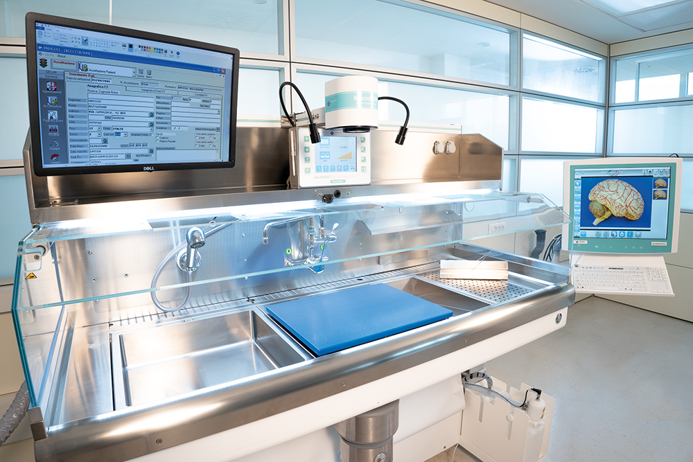 It is well known that grossing is one of the pillar steps in the specimen preparation toward pathology diagnosis, however this procedure often relies on inaccurate approaches and uses obsolete tools. Over the years, traditional grossing stations have been incrementally improved, but never offered a breakthrough approach to this pivotal step. UltraGROSS opens a new era of the grossing devices: for the first time ever the grossing station becomes a scientific tool. With the UltraGROSS, the pathologist generates full documentation and ensures complete traceability of the grossing, maintaining intact the chain of custody. This new scientific tool incorporates several innovations that have a direct impact on the laboratory and its workflow.