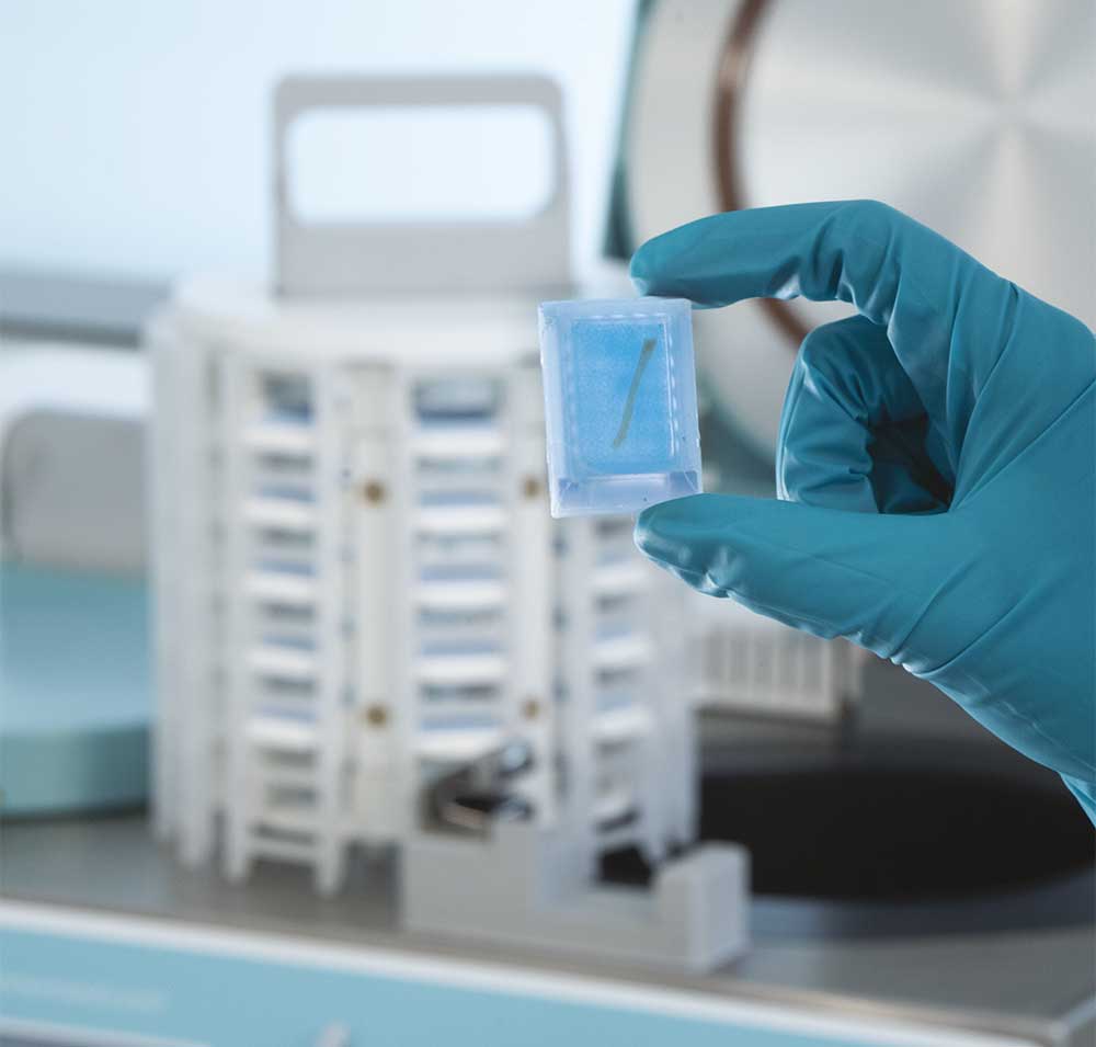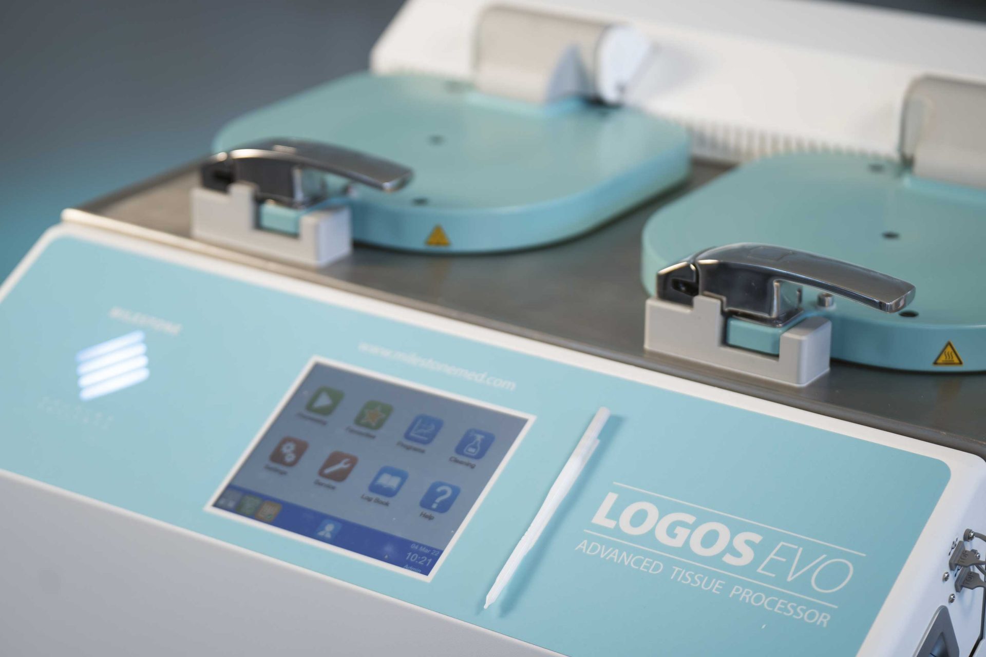 LOGOS EVO 配備智慧試劑管理系統,可簡化工作並防止錯誤。 儲罐的更換順利且安全。 該系統使用常規溶劑桶運行,試劑購入無需的轉移,從而易於更換且停機時間可以忽略不計。 專用連接器的使用和試劑條碼的掃描確保了無錯誤且可追蹤的過程。 LOGOS EVO 大大減少了試劑的使用,並允許使用綠色替代品:Milestone MileONE 和 MileTWO 是用於脫水和清除脂肪組織的替代試劑,提高了操作員的安全性並提供了更環保的方法。